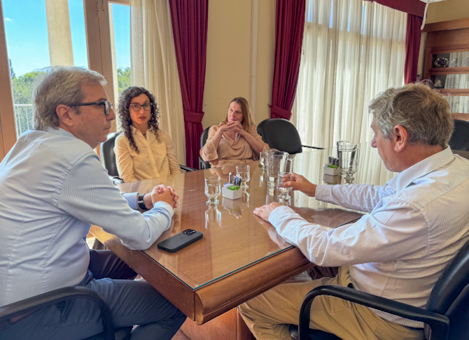 El rector Boretto, junto a la vicerrectora Marchisio y el secretario general Lago recibieron a Leticia Medina, la nueva secretaria general de Adiuc, recientemente elegida en el gremio de las y los docentes e investigadores de la Casa de Trejo. (25.04.2025)