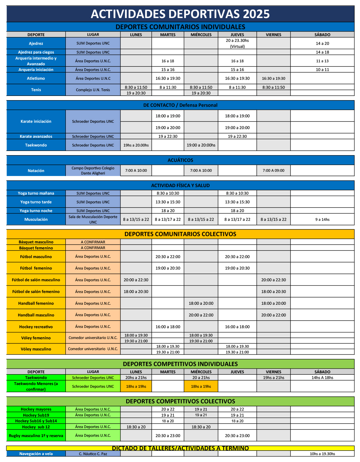 Ya puedes acceder a los diferentes tipos de actividades deportivas que ofrece la UNC para este 2025: