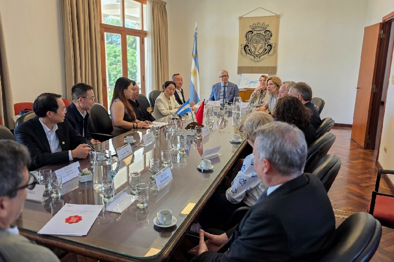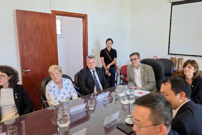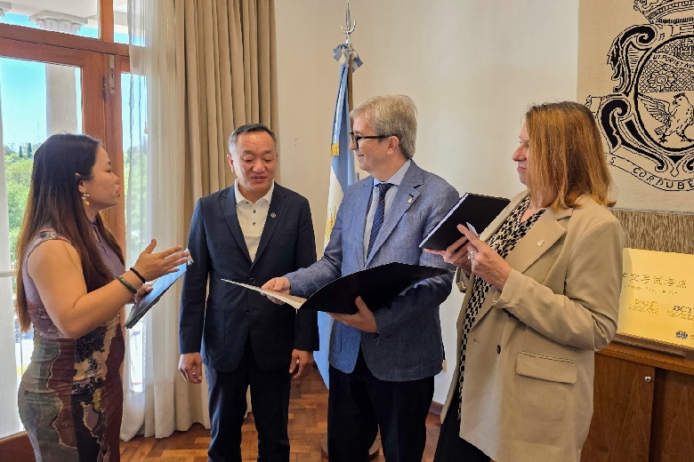 La delegación china mantuvo reuniones con el rector Jhon Boretto y la vicerrectora Mariela Marchisio, decanos, decanas y equipos de gestión de la UNC para consolidar proyectos bilaterales, avanzar en nuevos convenios específicos y acompañar la expansión del Instituto Confucio de la UNC, que inaugura un Centro Internacional de Exámenes de Chino. (11.12.2025)
