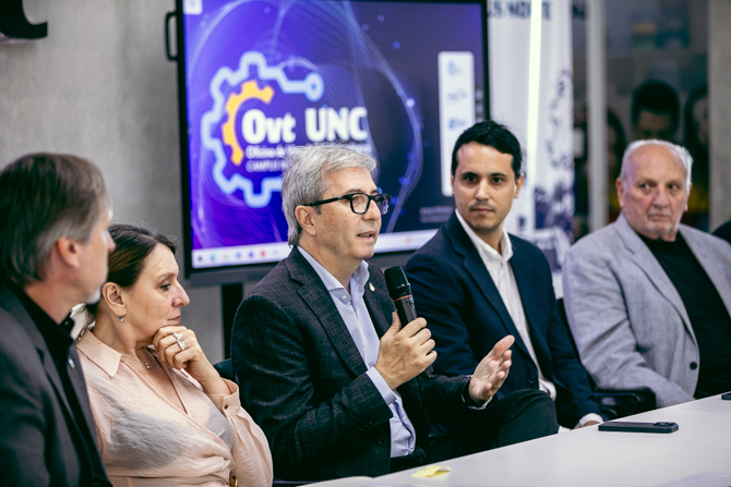 El cierre de la presentación estuvo a cargo del rector Boretto, quien subrayó que la UNC integra un ecosistema provincial donde “hay un espíritu de trabajo muy colaborativo entre las instituciones académicas, el sector privado y las áreas de gobierno”, y aseguró que iniciativas como la nueva Oficina de Vinculación Tecnológica “son pasos importantes en potenciar ese vínculo generando valor para nuestras comunidades”. Señaló que la universidad cuenta con un enorme potencial científico -sostenido por cientos de institutos de investigación, más de veinte de ellos de doble dependencia con CONICET- y que ese conocimiento puede transformarse en innovación, transferencia y políticas públicas con impacto real en la vida de las personas. Además, remarcó el compromiso de la UNC con la apertura hacia la comunidad y el gobierno abierto, orientado a fortalecer la participación, la colaboración con los distintos sectores y la transparencia como ejes centrales de la gestión universitaria.