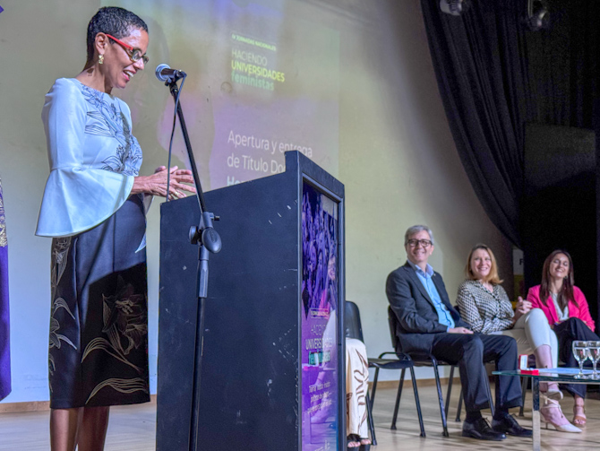 La UNC le entregó el título de Doctora Honoris Causa por su extensa trayectoria académica y profesional, su compromiso con la promoción de los derechos de las mujeres y de las diversidades en el ámbito internacional. El acto se realizó en el marco de las jornadas nacionales organizadas por la Red Interuniversitaria por la Igualdad de Género y contra las Violencias (RUGE-CIN). (06.11.2025)