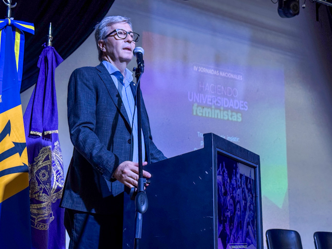 Durante su intervención, Jhon Boretto destacó la relevancia del encuentro. “Jornadas como esta promueven el pensamiento crítico y el intercambio de ideas, reafirmando objetivos que como Universidad nos proponemos para que la docencia, la extensión y la investigación se desarrollen en un entorno inclusivo, equitativo y libre de violencias”, expresó el rector.
