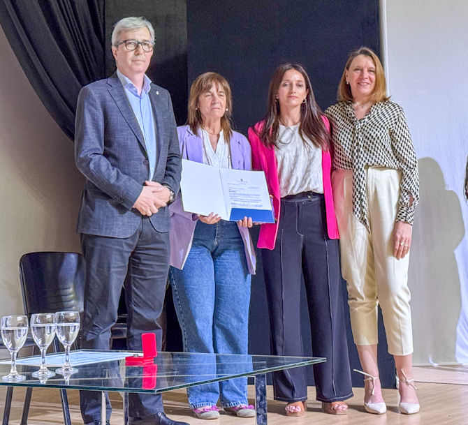 El acto contó con la presencia del rector Jhon Boretto; la vicerrectora Mariela Marchisio; la rectora de la Universidad Nacional del Comahue y coordinadora de la RUGE, Beatriz Gentile; y la coordinadora de la Unidad Central de Políticas de Género, Romina Scocozza.