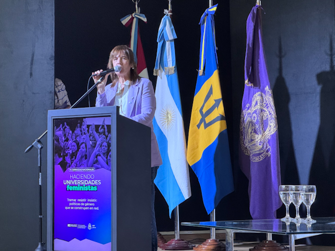 Por su parte, la rectora de la Universidad Nacional del Comahue y coordinadora de la RUGE, Beatriz Gentile, celebró el título que enmarca las jornadas: “Tramar, resistir e insistir”. “Tramar es tejer, construir, pensar y escribir. Escribir nuestras ideas conscientes de que estamos escribiendo el presente y futuro. Que no lo narre más lguien ajeno a nuestros intereses. Que la narrativa sea propia. Eso tiene que ver con construir en red y con poner en práctica ideas y políticas”, expresó Gentile.