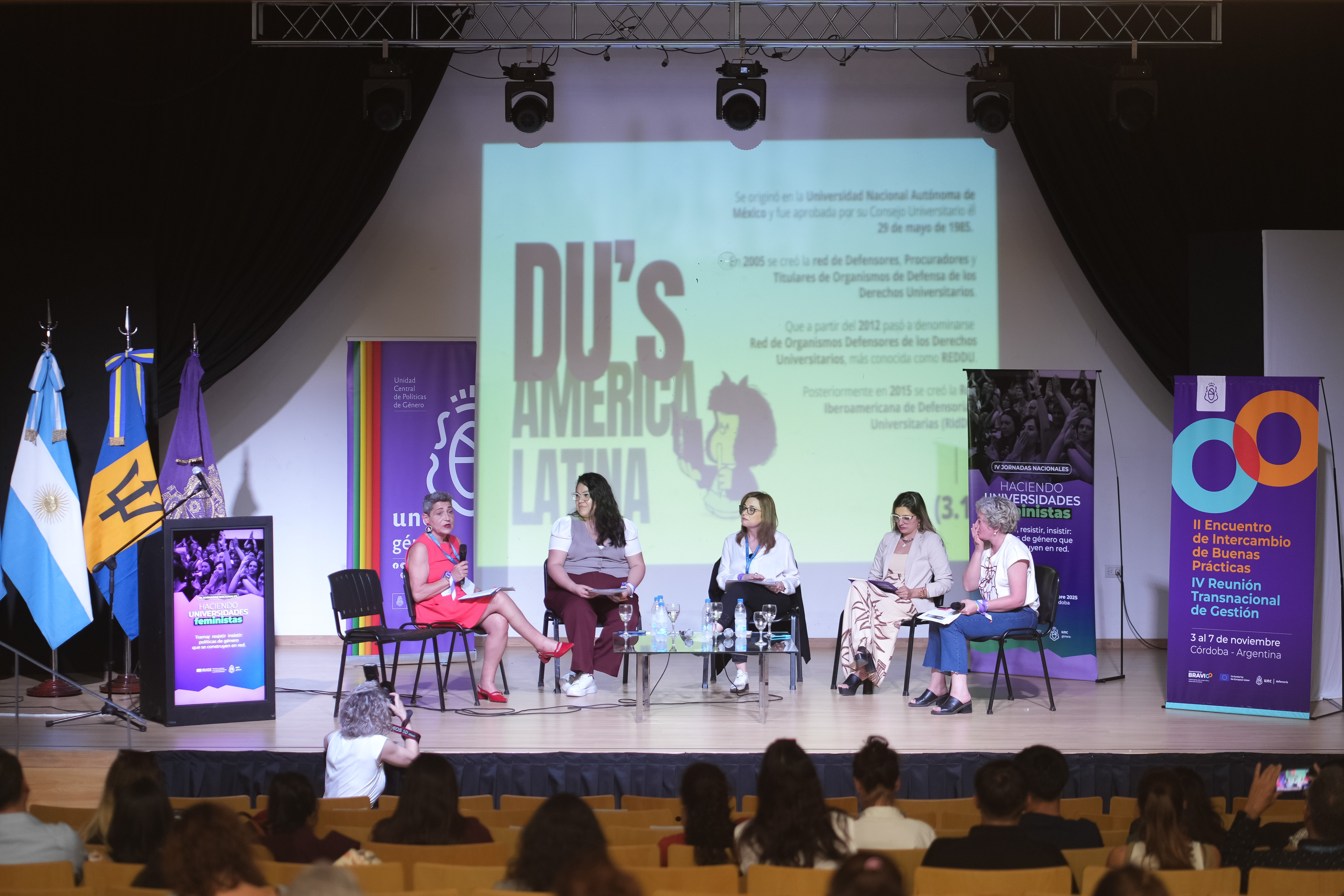 El lunes 3, los visitantes realizaron una visita guiada por la Manzana Jesuítica, con el fin de conocer la historia y la identidad de la UNC. Luego tuvo lugar el Acto de Apertura en la Sala del Honorable Consejo Superior, presidido por el Rector Jhon Boretto, la Vicerrectora Mariela Marchisio y la Defensora de la Comunidad Universitaria, Ana Guillermina Yukelson. En el acto participaron además autoridades universitarias, representantes del Foro de Rectores de la Provincia de Córdoba, y autoridades municipales y provinciales. Crónica completa: https://erasmusbravioo.com/cordoba-argentina-se-convierte-en-el-epicentro-global-del-dialogo-para-crear-y-transformar-defensorias-y-departamentos-de-bienestar-universitario/
