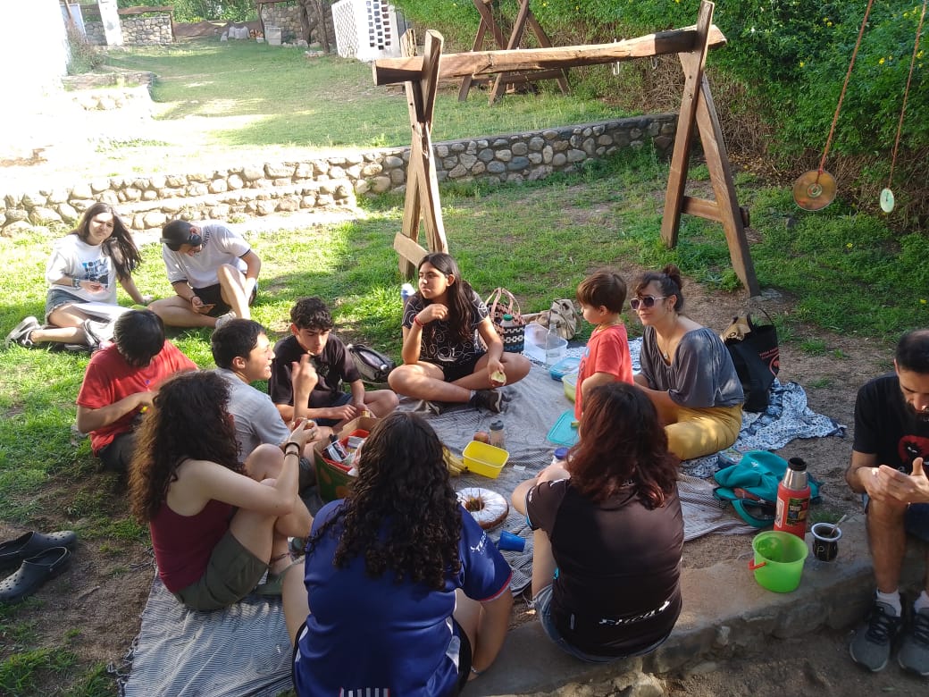 El octavo encuentro fue al lado del río, en el balneario Shambala de Los Aromos. Allí, los/as jóvenes que participaron elaboraron sus escritos respondiendo a la consigna ¿Cómo es la vida en tu pueblo?, que luego fueron compartidos en la Feria del Libro “Un monte de palabras”, que se realizó en el Centro Cultural Espacio Abierto de San José de la Quintana.