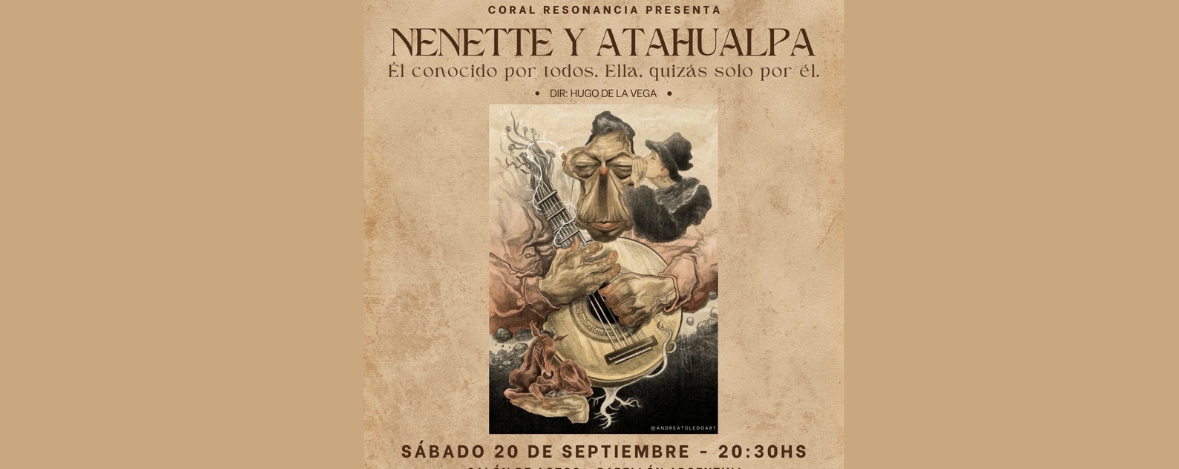 El sábado 20 de septiembre a las 20:30 hs  en Salón de Actos del Pabellón Argentina la agrupación coral Resonancia dirigida por el Mtro. Hugo de la Vega, prolífico  arreglador de música argentina y director coral, presenta un concierto homenaje a  Atahualpa Yupanqui NENETTE Y ATAHUALPA Él conocido por todos. Ella, quizás solo por él.