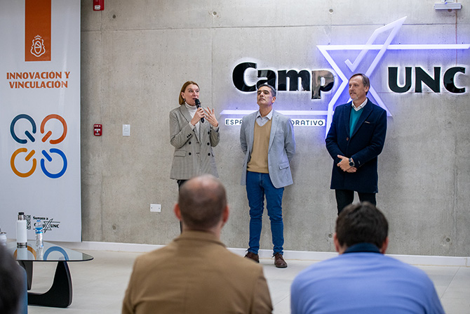 El evento contó con la presencia de la vicerrectora Mariela Marchisio, el secretario de Innovación y Vinculación, Santiago Palma, y el prorrector de Desarrollo Territorial, Juan Marcelo Conrero; mientras que Pablo Peralta representó a la Agencia Innovar y Emprender.